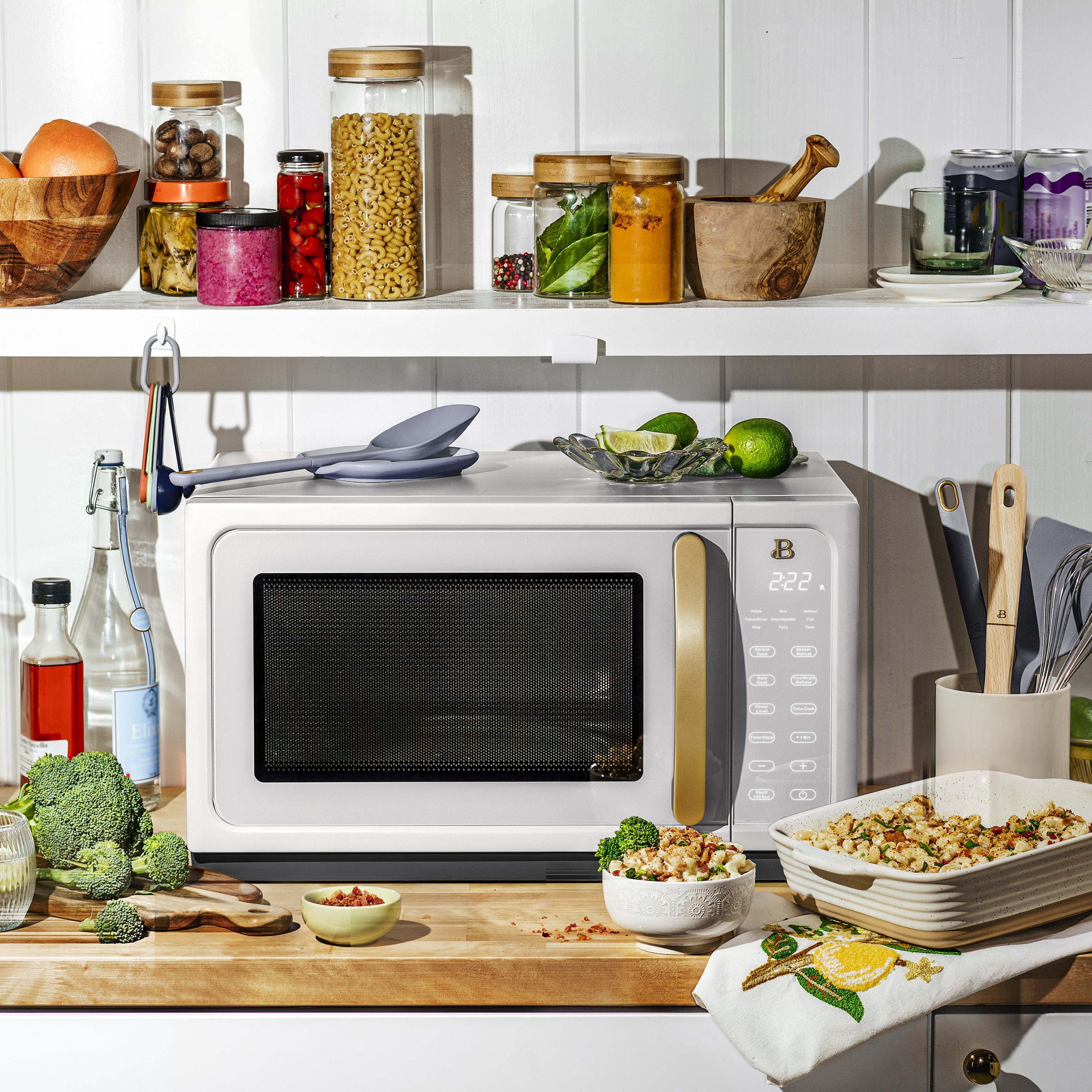 1.1 Cu ft 1000 Watt, Sensor Microwave Oven, White Icing by Drew Barrymore, New